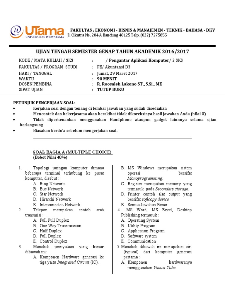 Soal Aplikasi Komputer Dan Jawabannya / Kumpulan Tugas Pengantar Aplikasi Komputer 2 Psikologi Universitas Gunadarma : Contoh soal dan photoshop dan jawabannya bagian kedua pada tulisan ini, merupakan kelanjutan dari contoh soal photoshop bagian pertama, yang bisa anda baca pada tulisan contoh soal photoshop beserta jawabannya (pilihan ganda lengkap) yang terdiri dari 10 soal.. Soal mikrotik pilihan ganda dan jawabannya 1. Nah pemrograman disini adalah pemrograman dasar yang biasanya dipelajari saat smk atau sudah masuk ke perguruan tinggi. Pengambilan gambar dari atas kepala d. Ciri presentasi video, kecuali a. Berikut ini soal latihan ukk / pat tik kelas 7 (vii) smp mts.