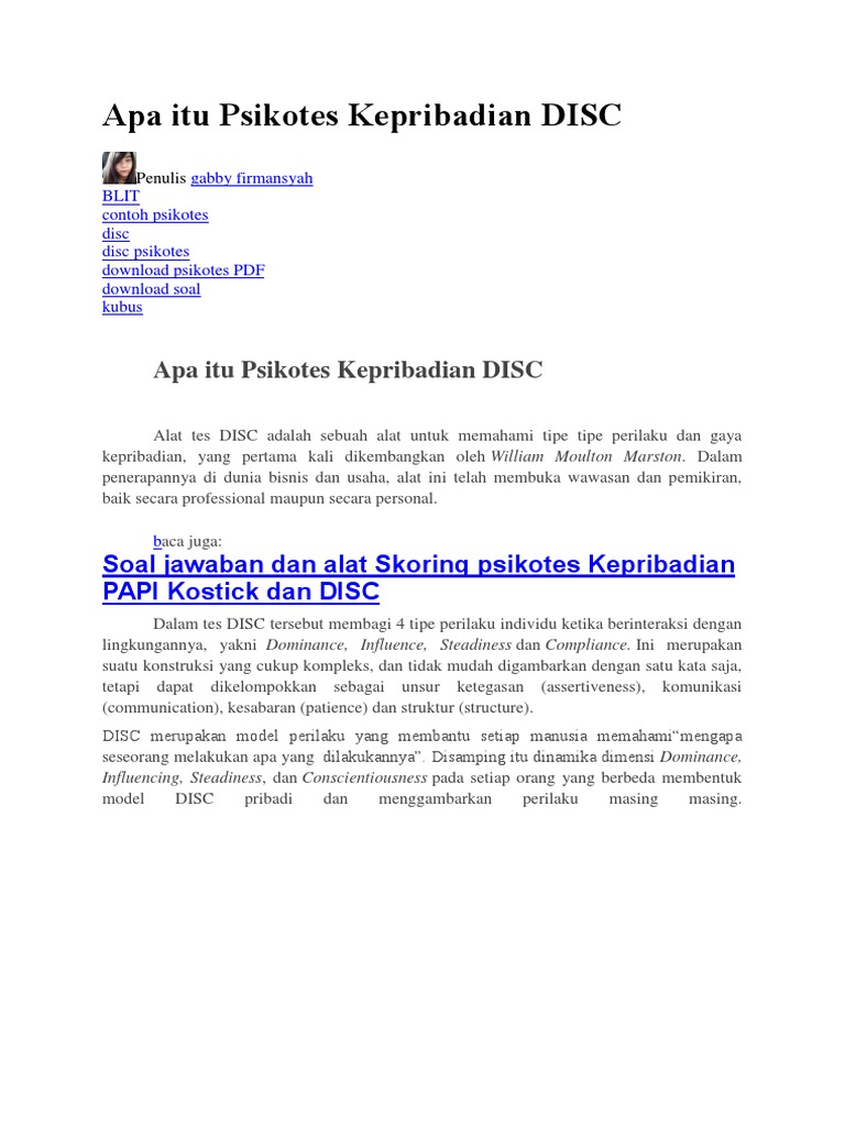 Apa Itu Psikotes Kepribadian Disc from data03.123doks.com Compress pdf file to get the same pdf quality but less filesize. Please fill this form, we will try to respond as soon as possible. Quick and simple online service, no installation required! Tips mengerjakan tes ini yaitu anda harus. Download scribd documents, issuu magazines quickly for free. Pdf drive is your search engine for pdf files. Iso2disc is the best free iso burner software to help you create bootable usb or cd drive from best free iso burner utility. Version 2.0 recommendations of the combined task forces of the north lee j, lee s.